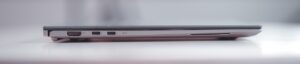 Meski tampil sebagai laptop OLED 13,3-inci paling tipis dan ringan, Zenbook S 13 OLED (UX5304) masih dilengkapi dengan berbagai port I/O, membebaskan pengguna dari kebutuhan membawa dongle saat bepergian. Dua port USB-C® Thunderbolt™ 4 pada laptop ini mendukung pengisian daya yang cepat, tampilan eksternal beresolusi 4K, dan transfer data dengan kecepatan hingga 40 Gbps. Laptop ini juga menyediakan port USB 3.2 Gen 2 Type-A, port HDMI® 2.1, dan 3.5mm combo aduio jack. Belum pernah ada laptop yang setipis dan memiliki port selengkap Zenbook S 13 OLED (UX5304).